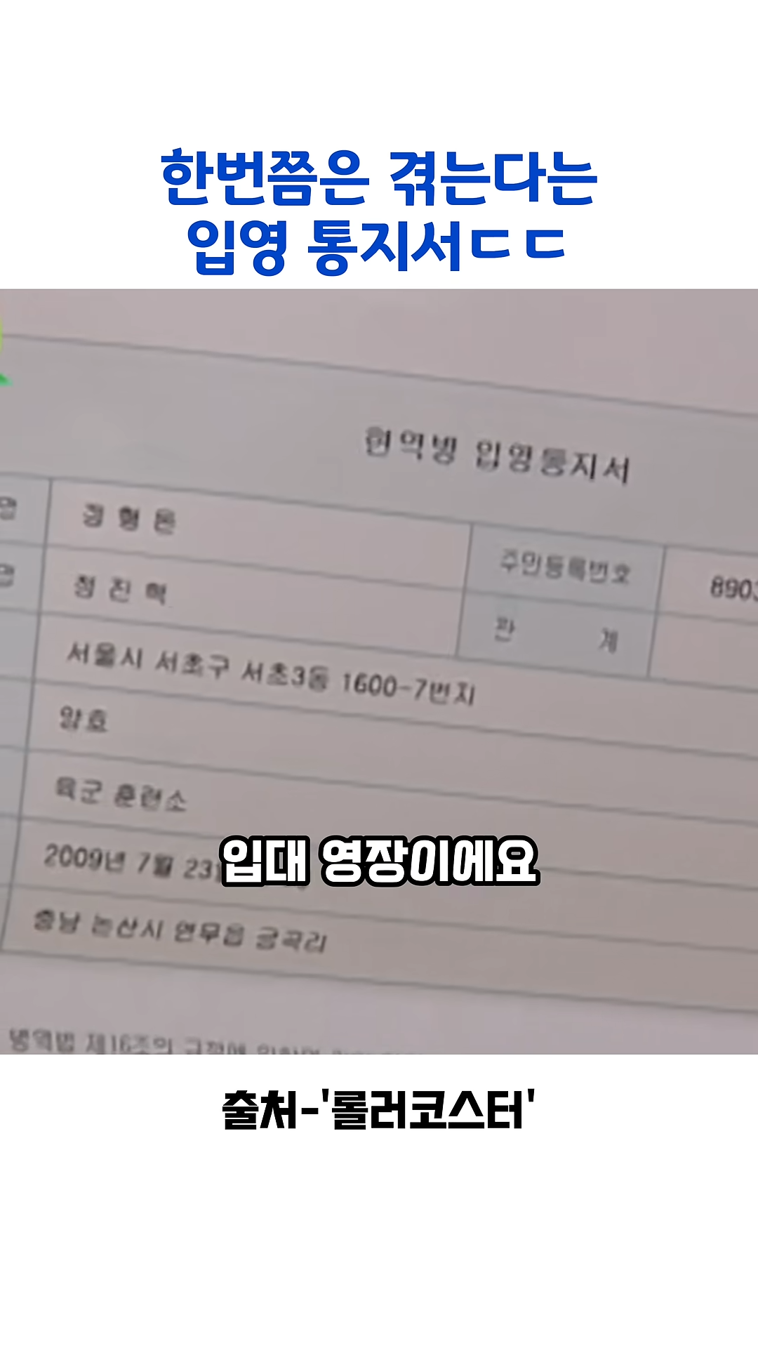 한번쯤 격는다는 입대 통지서
