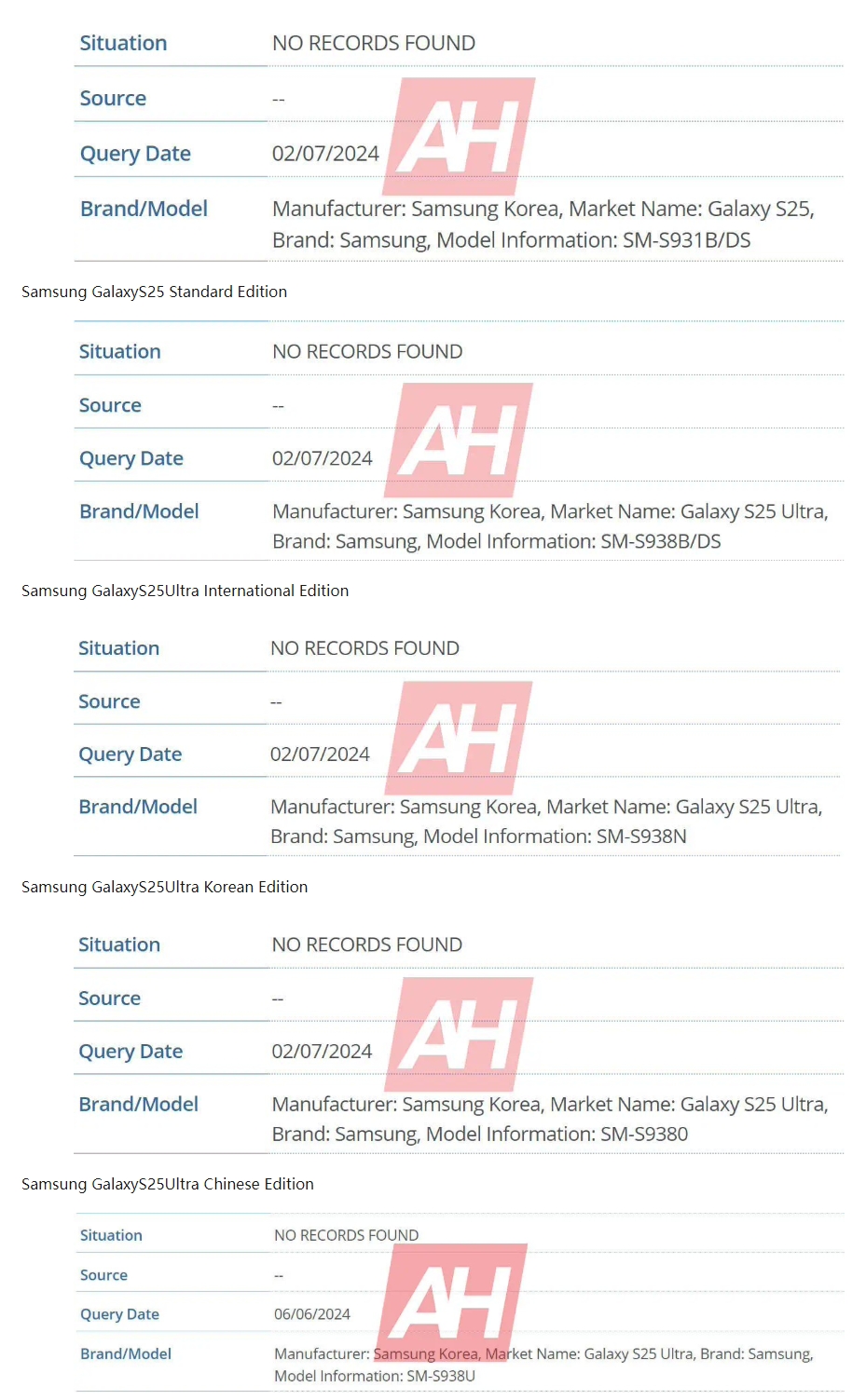 갤럭시S25 슬림, 글로벌 버전 모델명