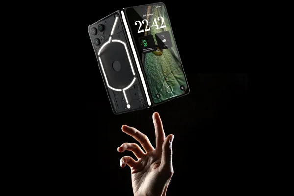 이번 콘셉트 폴더블폰은 6.5인치 외부 화면과 8.37인치 대형 내부 디스플레이를 갖추고 있으며, 부팅 시 '1'을 표시하며 뒷면의 글리프 인터페이스가 특징이다.