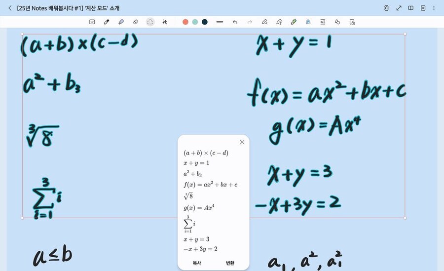 * 수식 변환과 계산식 지원 범위, 그리고 지원 기기는 업데이트 상황에 따라 변경 될 수 있습니다.