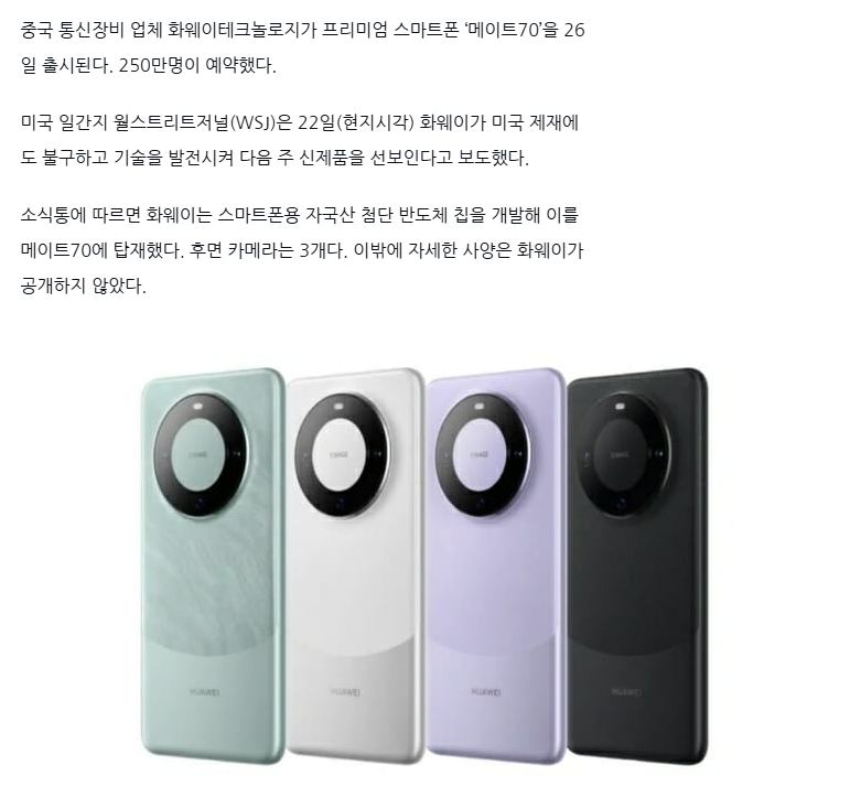 화웨이, 프리미엄폰 ‘메이트70’ 26일 출시…"250만명 예약"