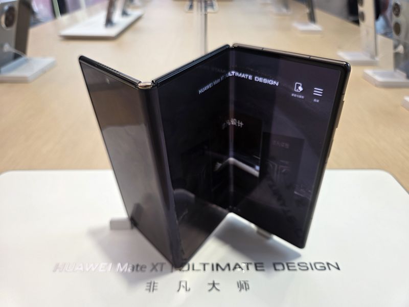 중국 선전 화웨이 플래그십 스토어에 전시된 화웨이 메이트 XT. 사진=구자윤 기자