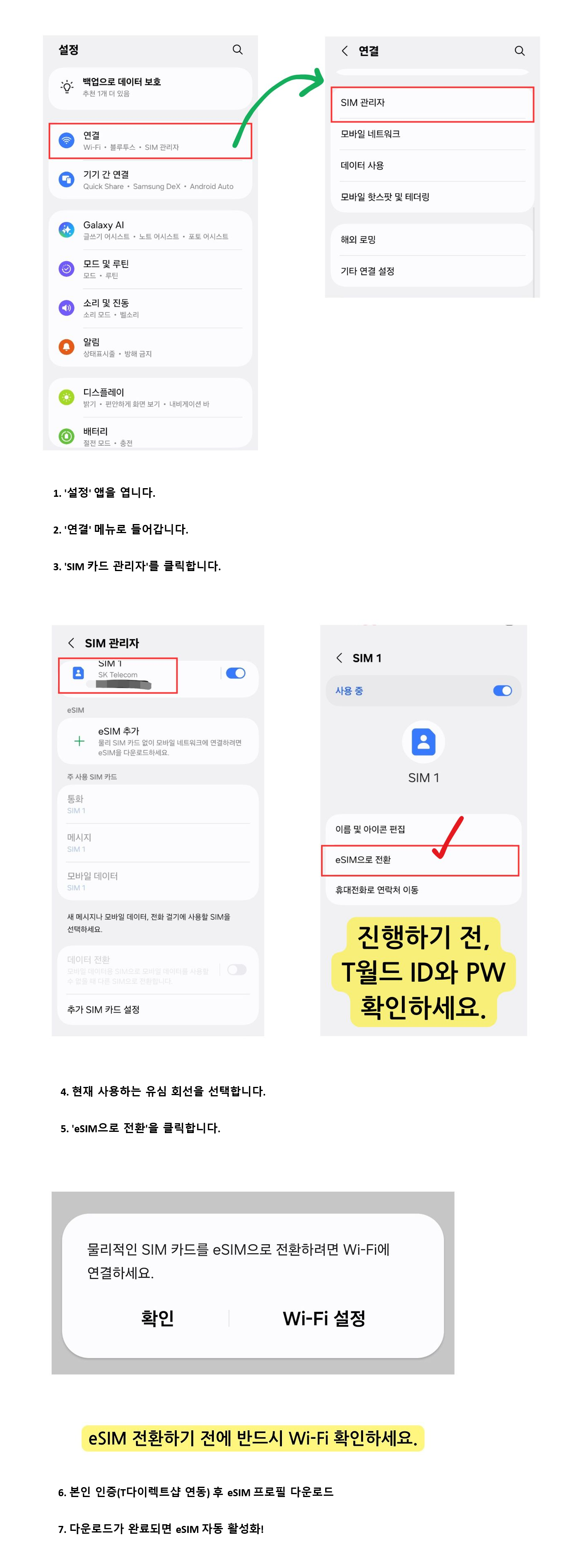 SKT 유심에서 esim 으로 변경하기
