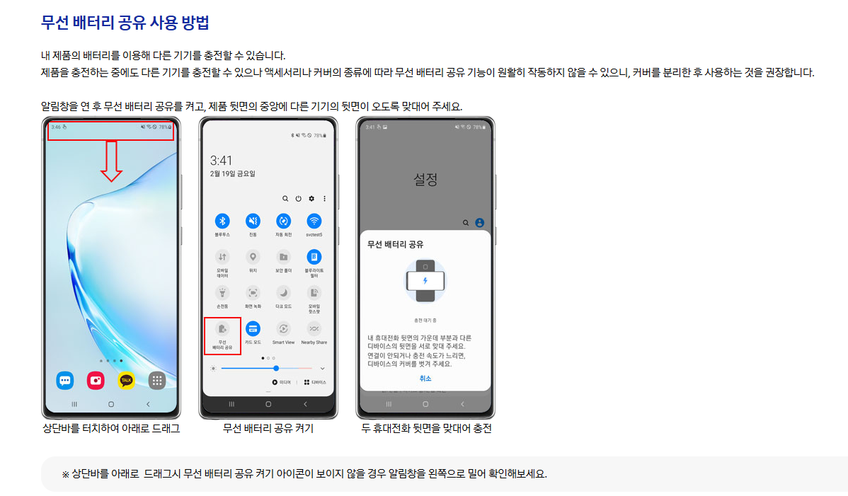 무선 배터리 공유 사용 방법