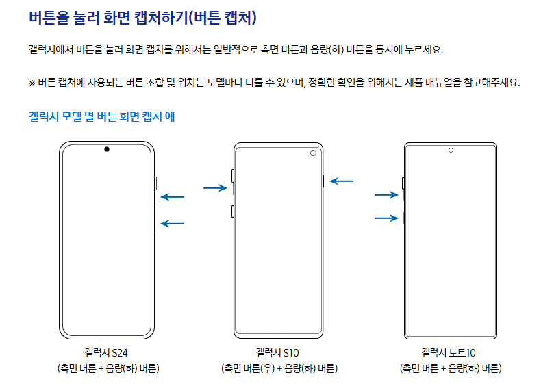 갤럭시, 화면 캡처 방법