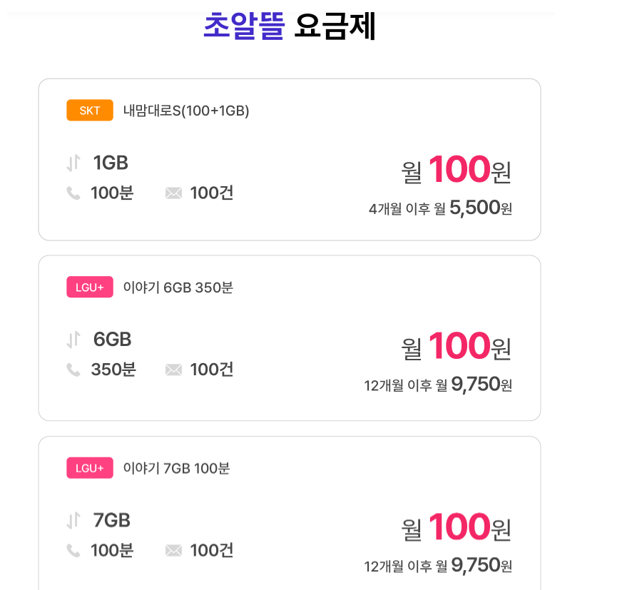 5G 350분 100문자 2530원
